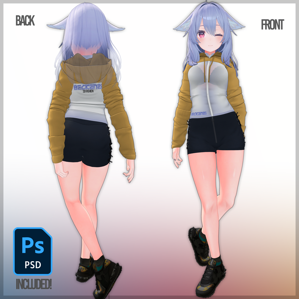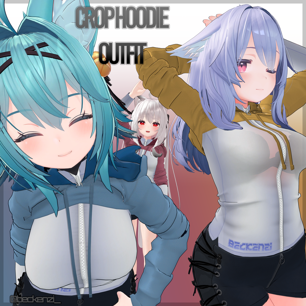 3D Extra Crop Hoodie for VRChat, Kikyo, Maya, Selestia, Rindo